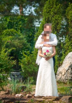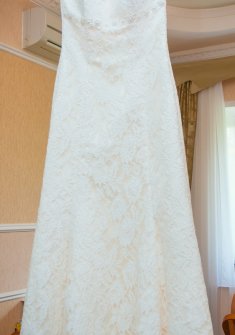 Свадебное платье цвета айвори на девушку ростом 155-160 см в идеальном состоянии. Платье на шнуровке затягивается как корсет, подойдёт на размеры от 42 до 46. Платье очень красиво садится по фигуре, подчёркивая все достоинства и скрывая недостатки. Платье трехслойное - подклад, основная ткань, кружево. Фата - 500 руб. Чехол для платья - 300 руб.