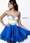Короткое коктейльное платье с корсетом, расшитым полностью пайетками и бисером, с вырезом «сердечко», расшитым крупными акриловыми камнями. В области талии пояс из акриловых камней, визуально делающий талию стройнее. Лиф с чашечками, юбка воздушная, выполнена из нескольких слоев фатина.